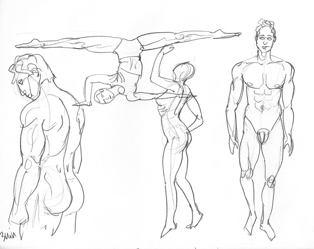 Quelques Croquis rapides de trois minutes chaque réalisés sur https://quickposes.com/